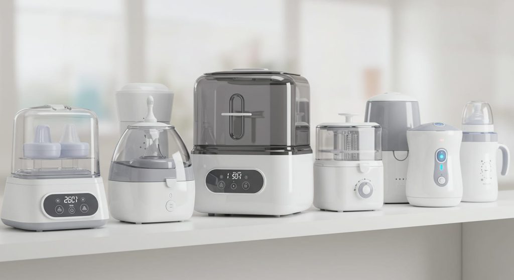 - Nagy kapacitás: egyszerre több palack, cumi és etetőeszköz fér el benne